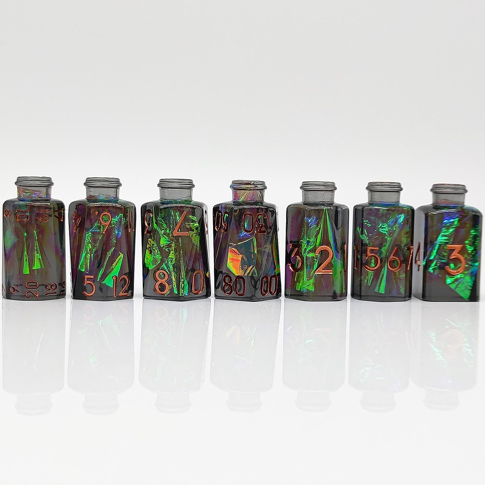 Black Potion Bottle Resin Dice Set with Copper Numbers