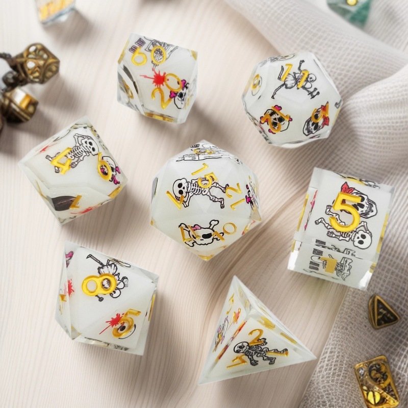 Skeleton Resin Dice Set – White Base Polyhedral Dice